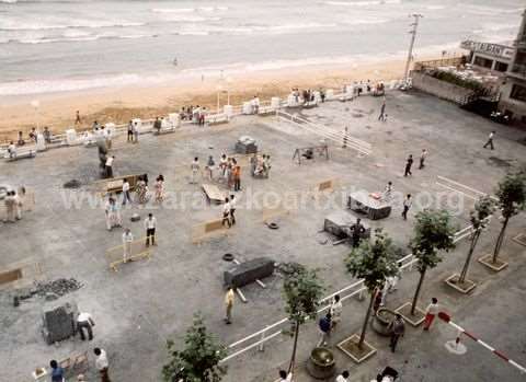 1985ean, Zarauzko Munoa, eskultoreentzat hain preziatua den Markinako harri zuri-beltzezko bloke tzarrez bete zen. Harrigarria zen herritarrontzat mundu guztitik etorritako eskultoreak bertan lanean ikustea. "HARRI TA HERRI" Nazioarteko I ESKULTURA SIMPOSIUMA ospatzen zen.